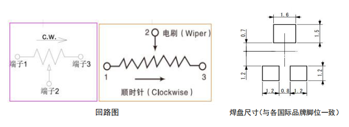 下圖是微動可調的腳位焊接圖,此焊接位與北陸,帝國,BOURNS,村田,松下品牌的焊接腳位均為一致,即表明,可通用于如上這些品牌。