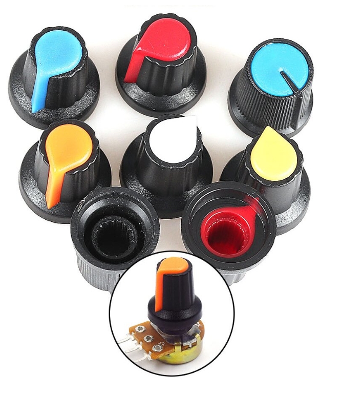 帶有防滑條紋,用于電位器,編碼器,波段開關(guān)等,旋鈕帽孔徑有6mm通過手動(dòng)調(diào)節(jié)轉(zhuǎn)軸和滑柄,改變動(dòng)觸點(diǎn)在電阻體上的位置,則改變了動(dòng)觸點(diǎn)與任一個(gè)固定端之間的電阻值從而改變了電壓與電流的大小。此開關(guān)帽有防滑作用,安裝使用起來(lái)的手感會(huì)更加舒適
