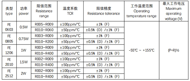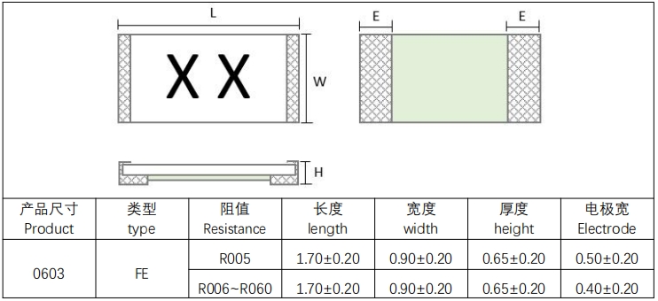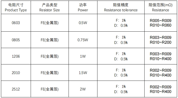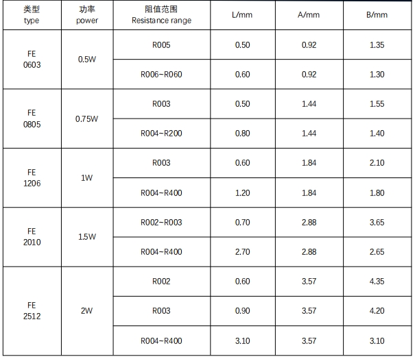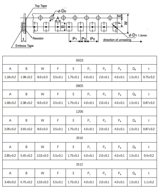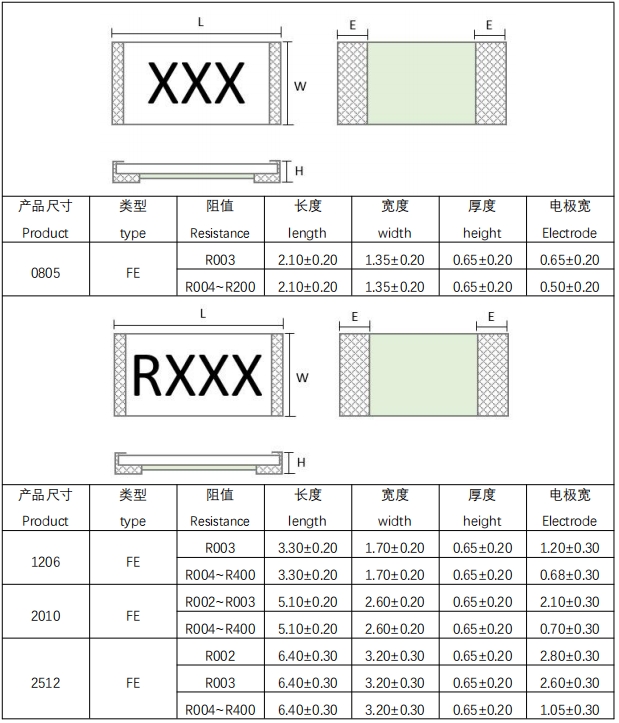 電阻尺寸:0603、0805、1206、2010、2512