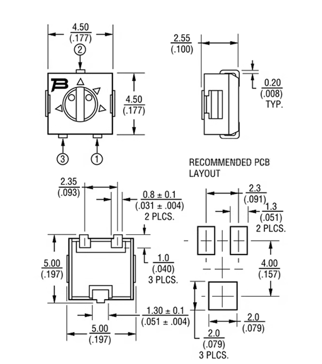 大小/尺寸: 方形 - 0.177" x 0.177" 表面 x 0.100" 高(4.50mm x 4.50mm x 2.55mm)