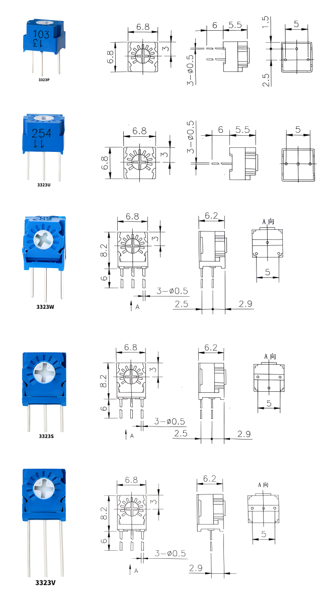 玻璃釉預(yù)調(diào)電位器有兩種類型:多圈微調(diào)電位器和單圈微調(diào)電位器。有3296系列、3266系列、3006系列、3299系列用于多匝金屬玻璃釉預(yù)調(diào)電位器。單圈微調(diào)電位器有3323系列、3329系列、3362系列、3386系列、3360系列