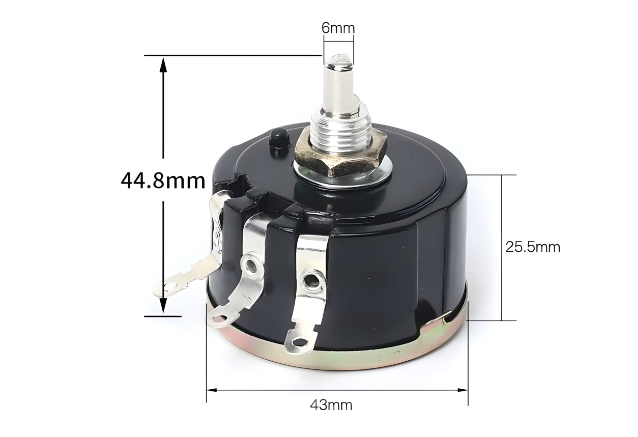 WX112單圈線繞電位器軸直徑:6mm,軸桿規(guī)格:20-ZS-3.外徑:45mm,阻值精度: ±5% ±10%,功率:5W,包裝:20只/盒。