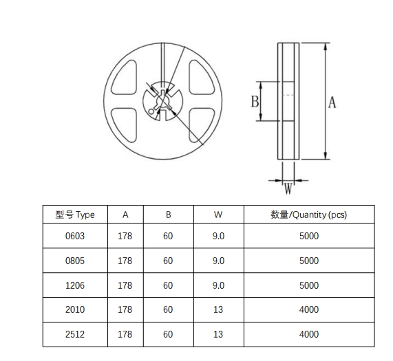 電阻尺寸:0603、0805、1206、2010、2512